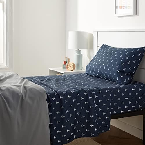 Amazon Basics Kid’s Soft Easy-Wash Lightweight Microfiber 3-Piece Sheet Set, Twin, White Anchors, Printed : Home & Kitchen