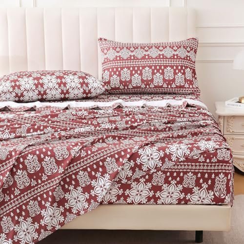 ChicView Queen Size Paisley Printed Sheet Set,4 Pieces Boho Style Breathable Soft Microfiber Bedsheets, Anti Pilling Deep Pockets Easy Care Bed Sheets, Red : Home & Kitchen
