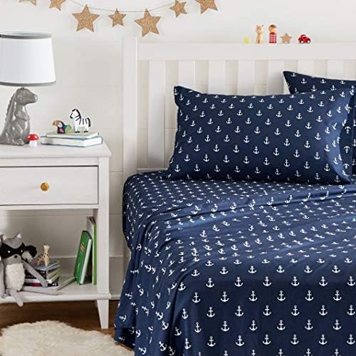 Amazon Basics Kid’s Soft Easy-Wash Lightweight Microfiber 3-Piece Sheet Set, Twin, White Anchors, Printed : Home & Kitchen