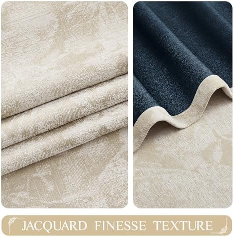 Beauoop Beige Floral Jacquard Blackout Curtains 84 Inches Long 2 Panels for Bedroom Living Room Flower Chenille Room Darkening Thermal Insulated Soundproof Grommet Window Treatments Drapes 52x84x2 : Home & Kitchen