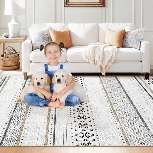 BESTSWEETIE 8×10 Area Rugs for Living Room Washable Moroccan Farmhouse Neutral Geometric Low Pile Non-Slip Soft Print Pattern Rug for Bedroom Kitchen Dining Room Entryway Black/Brown : Home & Kitchen