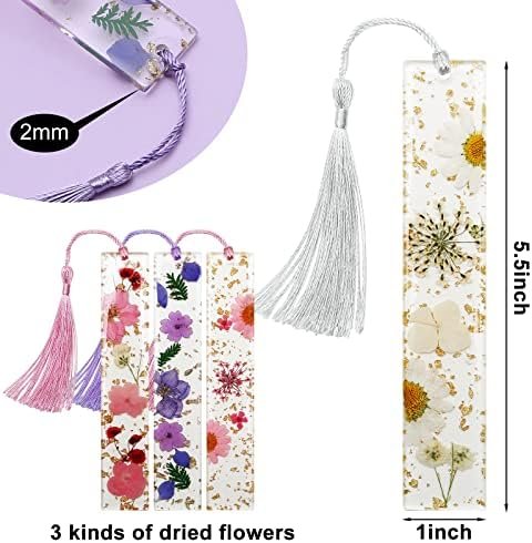 Bookmarks for Women, Kaluofan 2PCS Book Marks for Reading Women, Durable Handmade Dried Flower Resin Bookmarks with Tassels, Pretty and Increase Reading Interest : Office Products