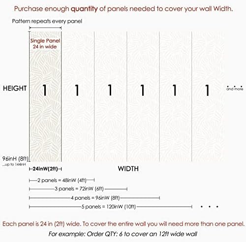 - MADE FOR YOU: Our wallpapers are sold by the panel, and each panel is custom printed. Each wallpaper panel is 24″ inches wide with an additional 3/4″ overlap for easy alignment. Select the HEIGHT option and panel QUANTITY based on your project WIDTH and HEIGHT measurements.
