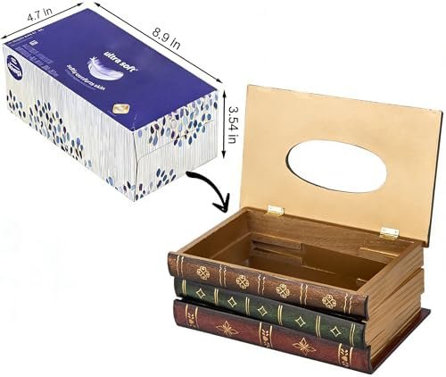 Be the first to review “Crafted Classical Retro Wooden Antique Book Tissue Box Cover Rectangular Tissue Holder Dispenser Paper Cover Case Napkin Holder Home Decor for Bathroom Living Room Office car Kitchen : Home & Kitchen”