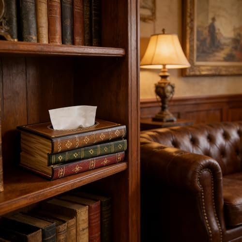Crafted Classical Retro Wooden Antique Book Tissue Box Cover Rectangular Tissue Holder Dispenser Paper Cover Case Napkin Holder Home Decor for Bathroom Living Room Office car Kitchen : Home & Kitchen
