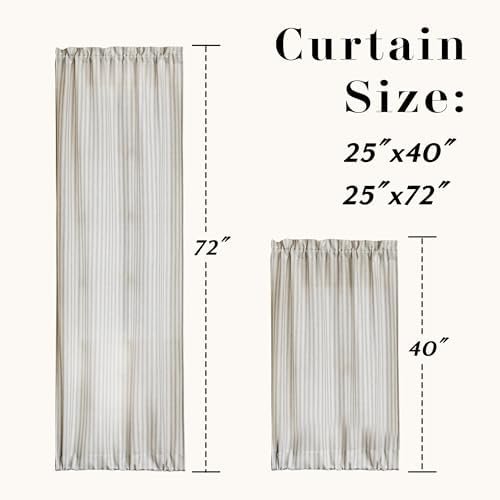 Door Curtains for Front Door Glass Window,Striped Sheer Linen 40 Inch Short Curtains for Small Windows,Farmhouse Ticking Stripe Print Privacy Curtains 25×40 in Length,Taupe : Home & Kitchen