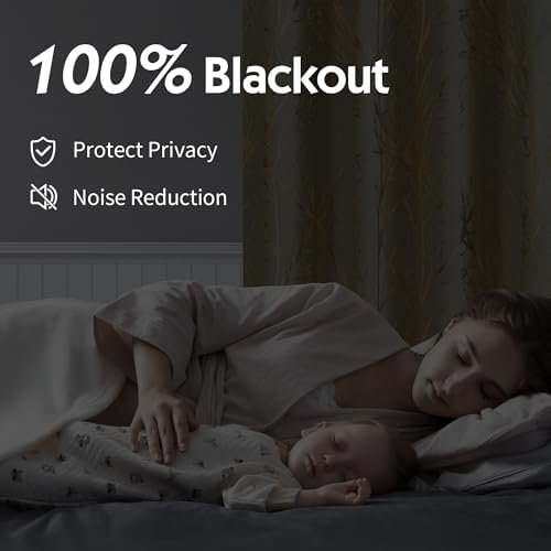 FMFUNCTEX 100% Blackout Curtains Ivory Gold Tree for Living Room, Curtains 84 Inches Long Foil Branch Patterned Panels for Bedroom, Thermal Insulated Drapes Home Office Grommet Top 2 Panels : Home & Kitchen