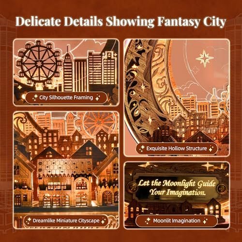 - 【Exquisite Details with Fine Craftsmanship】Crafted from durable 3-ply wood, each laser-cut piece ensures a seamless fit and polished finish. When illuminated, the layered cityscape casts delicate shadows and intricate lines, transforming into a sophisticated decorative puzzle that elevates any living space with its ambient glow and artistic silhouette.