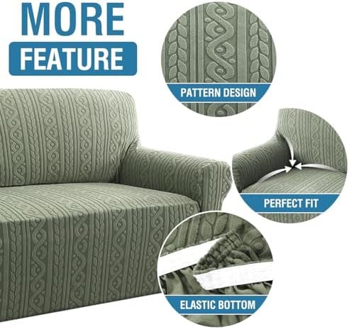H.VERSAILTEX Couch Covers for 2 Cushion Sofa 1 Piece Stretch Loveseat Slipcover Pet Dog Universal Slip Cover Love Seat Covers Upgrade Thick Jacquard Fabric with Spiral Pattern(58″-70″, Sea Grass) : Home & Kitchen