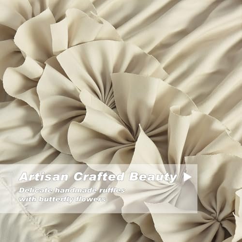 Homechoice Decor Camel Blackout Curtains with Handmade Ruffles, Butterfly Flower Embellishments for Thermal Insulated Room Darkening Drapes, 42″ W x 63″ L (Pair) for Bedroom, Living Room (LQ-37) : Home & Kitchen