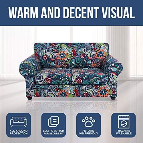 hyha Couch Cover, Loveseat Covers, Floral Pattern, Stretch, Printed, 3 Pieces, Sofa Slipcovers, for 2 Separate Cushion Couch Sofa, Washable Furniture Protector for Dogs(Loveseat, Paisley Floral) : Home & Kitchen