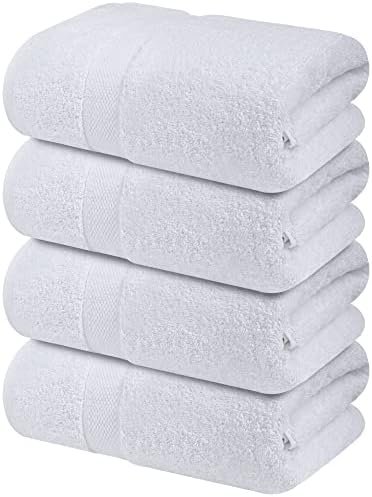 Infinitee Xclusives Luxury 100% Ring-Spun Cotton White Bath Towels Set of 4 (27×54 inches) – Soft, Absorbent & Quick-Drying Towels for Bathroom, Gym, Spa & Hotel Use (Brilliant White, Bath Towels) : Home & Kitchen