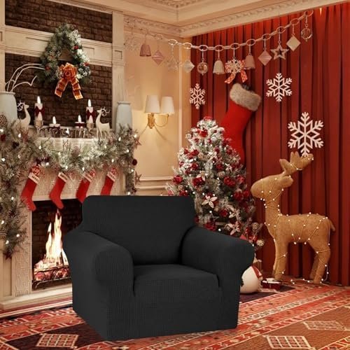 KEKUOU Stretch Single Sofa Slipcover 1 Piece Couch Sofa Cover (31″-55″) Furniture Protector 1 Seater Sofa with Elastic Bottom for Kids,Pet.Jacquard Small Checked Pattern Fabric(Small,Black) : Home & Kitchen