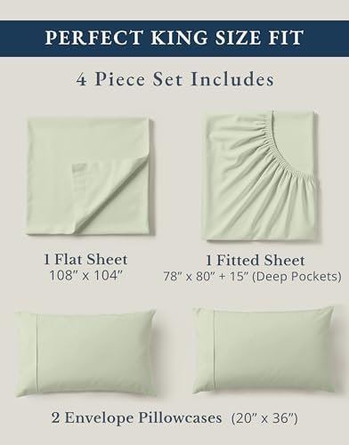 LANE LINEN 100% Organic Cotton King Bed Sheet Set, Bedsheets 4Pc Soft Cooling Fully Elasticized Mercerised All Season Sustainably Produced Cotton Sheets King Size, Oeko Tex Sheets – Mineral : Home & Kitchen