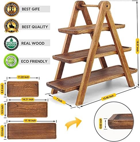- [WHAT YOU GET]- We packed serving plates in warm gift box, a thoughtful present and must have for any host, the wooden trays is not only perfect size and thickness but also lightweight to easy move around with food, Package: 1 pcs 16.6 inch high collapsible ladder, the distance of each tier serving tray is 4 inch high, 1 pcs 17.2 x 5.5 inch wooden plate, 1 pcs 14.2 x 5.5 inch wooden tray, 1 pcs 11.2 x 5.5 wooden serving board