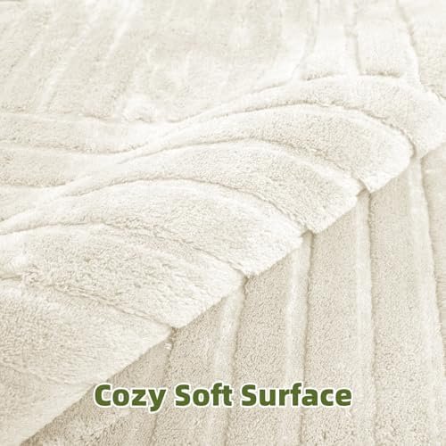 MATIIUI Beige Solid Area Rug 8×10 – Large Washable Soft Indoor Rugs for Living Room Bedroom, Modern Geometric Bohemian Pattern High-Low Pile Textured Carpet for House Apartment, Home Office Decor : Home & Kitchen
