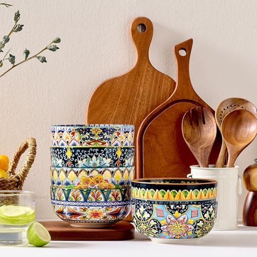 Meolibour Ceramic Cereal Bowls Set of 6, 28 oz Bohemian Soup Bowl, Colorful Bowls Set for Kitchen, Dessert Bowls for Salad, Pasta, Oatmeal, Ramen, Oatmeal, Fruit, Dishwasher & Microwave Safe : Home & Kitchen
