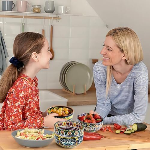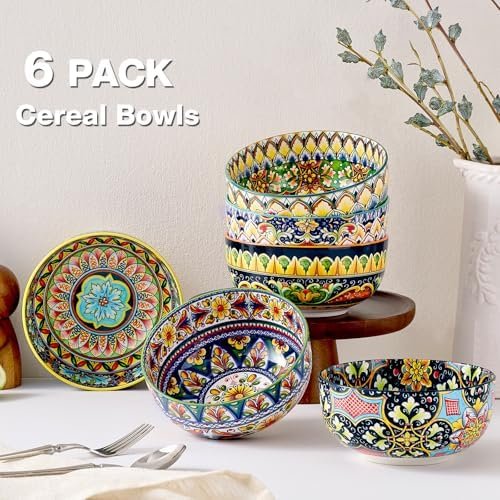 - 【Unique Design:】This cereal bowl set of 6, featuring vibrant colors and bohemian style patterns will sure to impress! Perfect for family use, dinner parties, garden parties, restaurant service, food storage, party, picnic, etc.