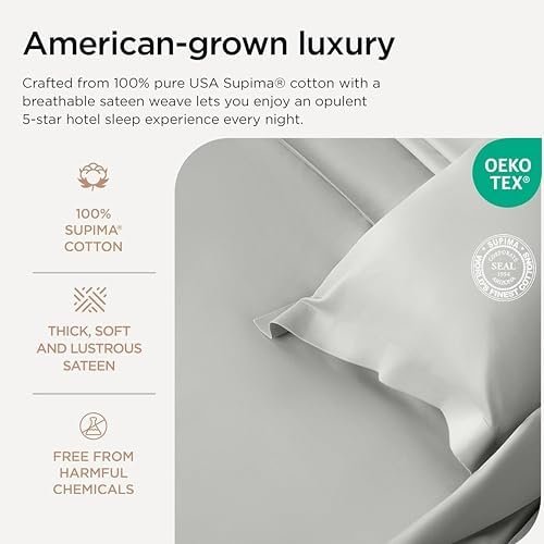 10 reviews for Threadmill Luxury Supima Cotton Sheets, 1200 Thread Count Soft 100% Cotton Sheets for King Size Bed, 4 Pc Light Grey King Bed Sheets Set, 5-Star Hotel Quality with Elasticized Deep Pocket King Sheet : Home & Kitchen