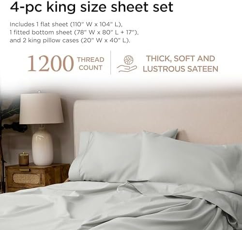 Threadmill Luxury Supima Cotton Sheets, 1200 Thread Count Soft 100% Cotton Sheets for King Size Bed, 4 Pc Light Grey King Bed Sheets Set, 5-Star Hotel Quality with Elasticized Deep Pocket King Sheet : Home & Kitchen