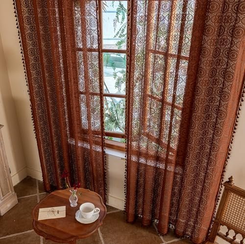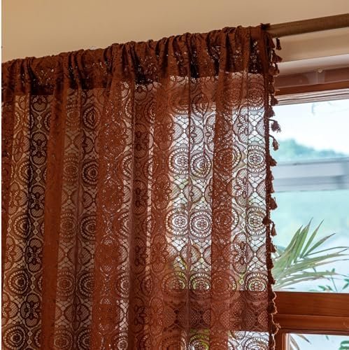 - VINTAGE BOHO DESIGN – Our crochet/doily like brown crochet curtains with tassels on all three sides make it looks unique and elegant. Caramel brown curtains omplements any design style, works in any room, and pairs well with neutrals as well as brights.