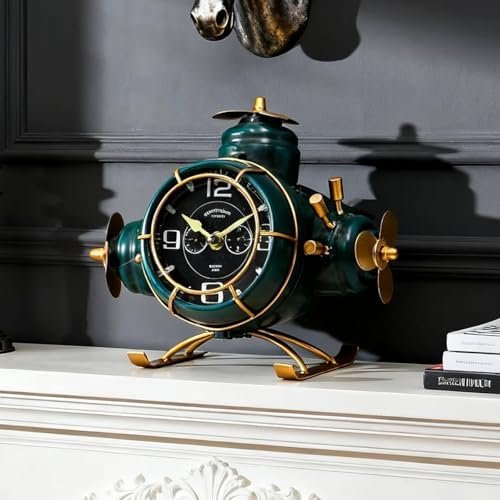 YOUKI Airplane Desk Clocks,Tabletop Decor,Airplane Gifts for Men,Industrial Decor,Shelf Clock for Bedroom Office,Silent No Ticking,Battery Operated,Green,8.6 x 8.4 x 7.5 inches : Home & Kitchen